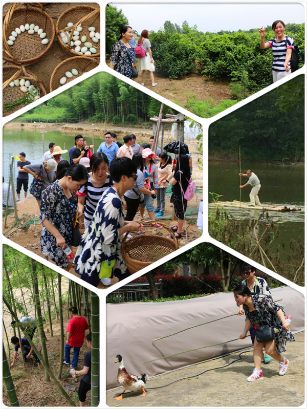 到达山庄后,全体进行一个好玩的游戏——捡鸭蛋。山庄里,60个鸭蛋早已被掩藏在了竹林间、茶园里、果树旁,静静地等待着远道而来的朋友。检鸭蛋游戏分为4组,每组4人,在20分钟内捡到鸭蛋最多的组获胜。还记得,第一个捡到鸭蛋的同事那兴奋的欢呼声;还记得大家拎着篮子、低着头小心翼翼地搜索着每一寸土地,生怕错过一个鸭蛋;还记得大家捡完鸭蛋后,你看看我的篮子,我看看你的篮子,然后趁别人稍不注意,轻轻地拿起别人篮子里的鸭蛋试图放回自己的篮子,结果一个不经意的转身,被发现,大家相视而笑……这场比赛,结果并不重要,重要的是比赛过程中的那份快乐和心与心的靠近!