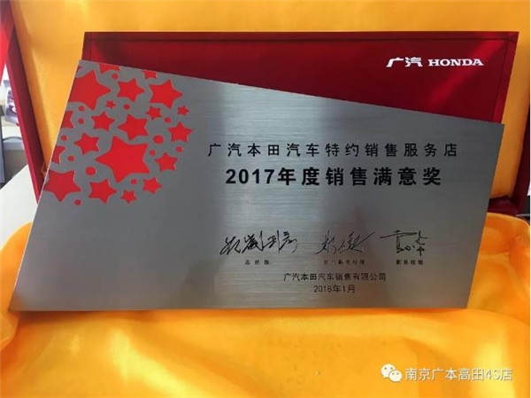 尤为值得庆贺的是,在此盛会上,广汽本田高田店荣获了2017年度销售满意大奖!这个奖项是奖励2017年在销售领域各项满意度考评项目综合得分优异的特约店,是对特约店销售领域客户满意度工作的肯定!俗话说,金杯银杯不如老百姓的口碑,全国522家特约店共评选10家,华东区仅我店一家入选,这个奖项的含金量可见一斑。消息传回之后,公司的小伙伴们都欢呼雀跃,自豪与兴奋之情溢于言表!
