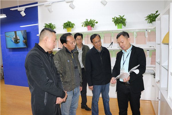 刘书记一行参观了公司市场开发中心、面料开发中心、模板中心、样品中心及检测实验室等部门,老师们对我司小工具、模板的开发运用尤感兴趣。孙总现场进行了详细阐述,并展示了由我司技术中心编写的小工具书籍,老师们连连称赞。