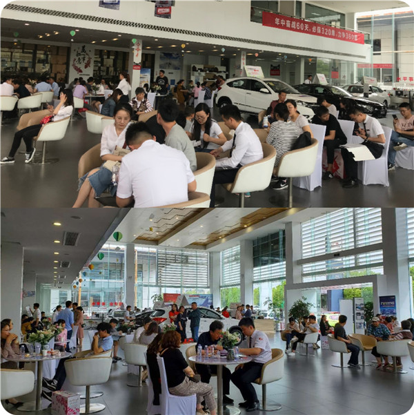 过后,销售经理上台宣布了非常重要的庆典活动价格政策,同时告知活动正式开始。由于价格相当令人心动,现场连洽谈桌都不够用了,收银处也是排起了长长的队,客户满载而归,庆典活动也获得圆满成功。