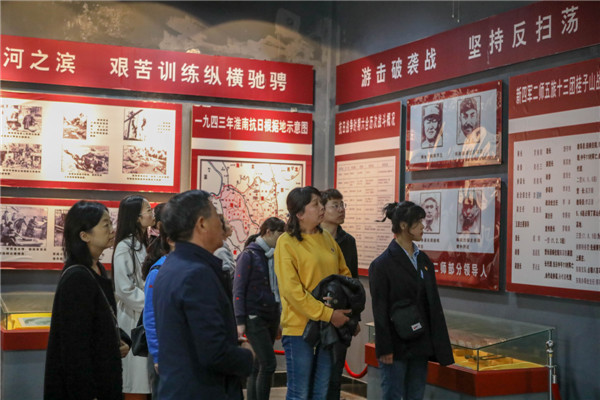 陈列馆里,通过工作人员的讲解,结合展出的革命文物和展板资料,同志们对桂子山战斗的始末及华东地区新四军抗战的总体情况进行了深入学习。