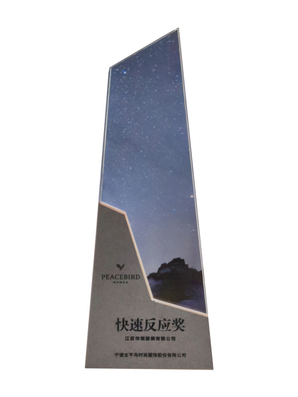 华瑞内贸五公司,2020年取得非常优秀的成绩,得到客户的极大认可,基于全年运作KPI数据平均在90分以上,全年追单批次和量为羽绒品类的TOP,相同量的产品平均生产周期在同品类中最短,14天完成率、快反占比为羽绒品类第一名,荣获“快速反应奖”。2021,我们将与太平鸟共创100亿+,一起奔向星辰大海,加油!
