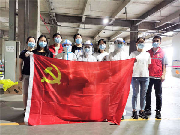 7月25日,南京市开展全员第二轮核酸检测,华瑞时尚集团党委8位党员和2021新入职的5位大学生,积极响应号召,踊跃报名核酸检测志愿者,和抗疫工作者、医护人员一起不顾个人安危、冲锋在前,在“我乐”园区核酸检测点,协助开展核酸检测。