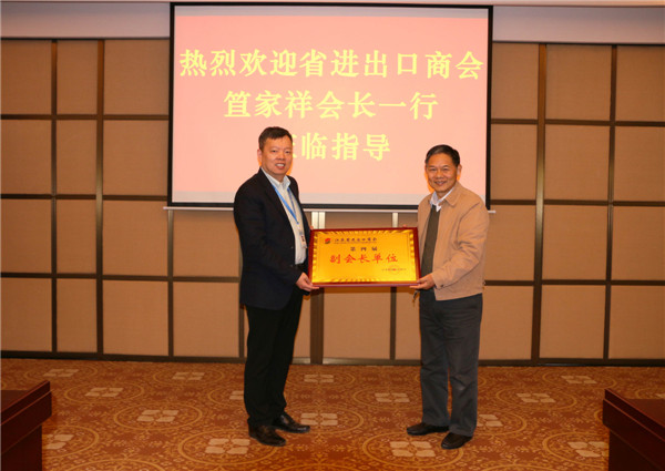 笪家祥会长代表江苏省进出口商会向公司授予了“第四届副会长单位”牌匾。