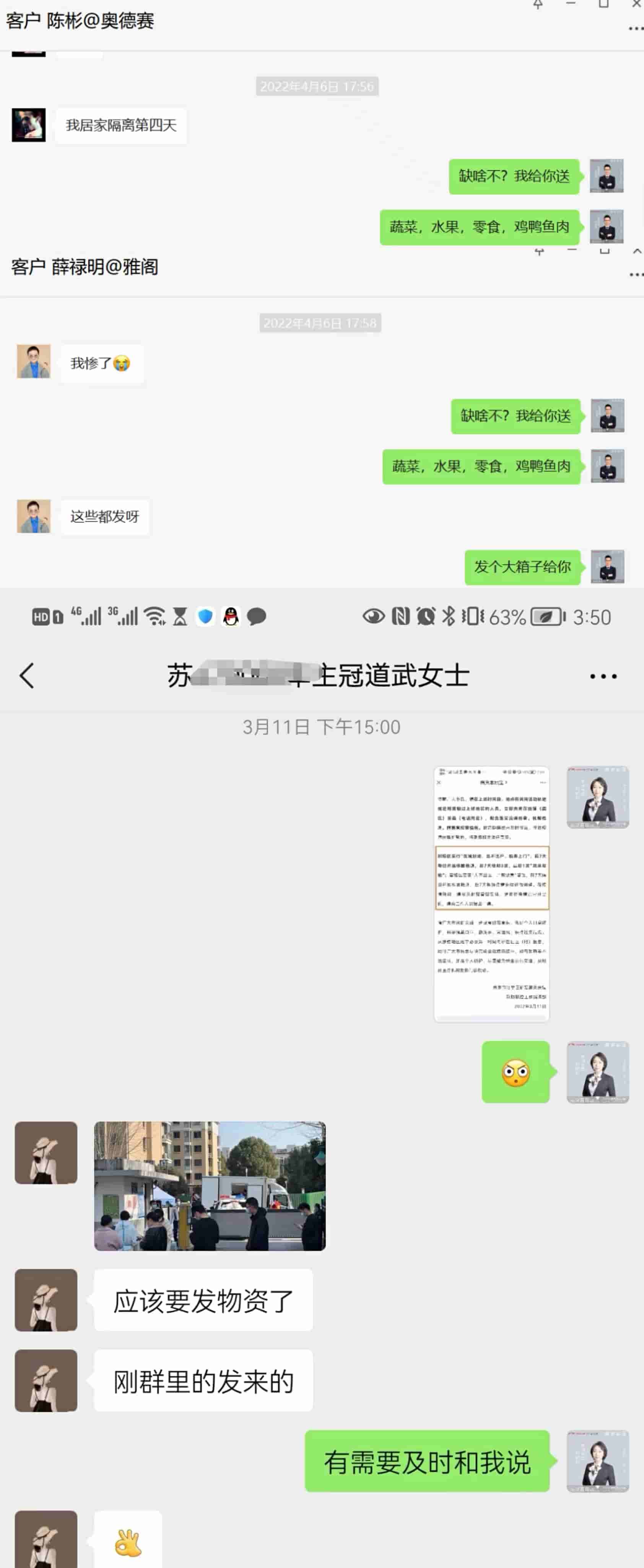 此次疫情期间,我们的客户很多受到了隔离管控,对于隔离客户,我们主动关怀,主动询问客户是否有需要递送的物资,让客户感觉到我们温暖的关怀。