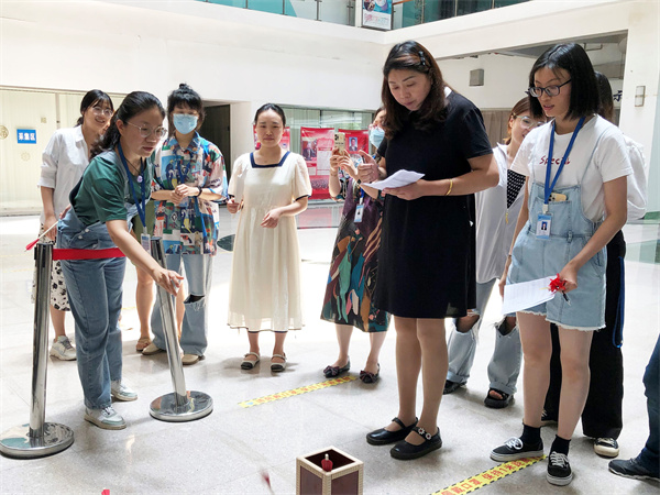 6月2日中午12点,活动参与者们兴高采烈地在公司一楼大厅集合,准备游戏比拼和DIY缝制香囊。