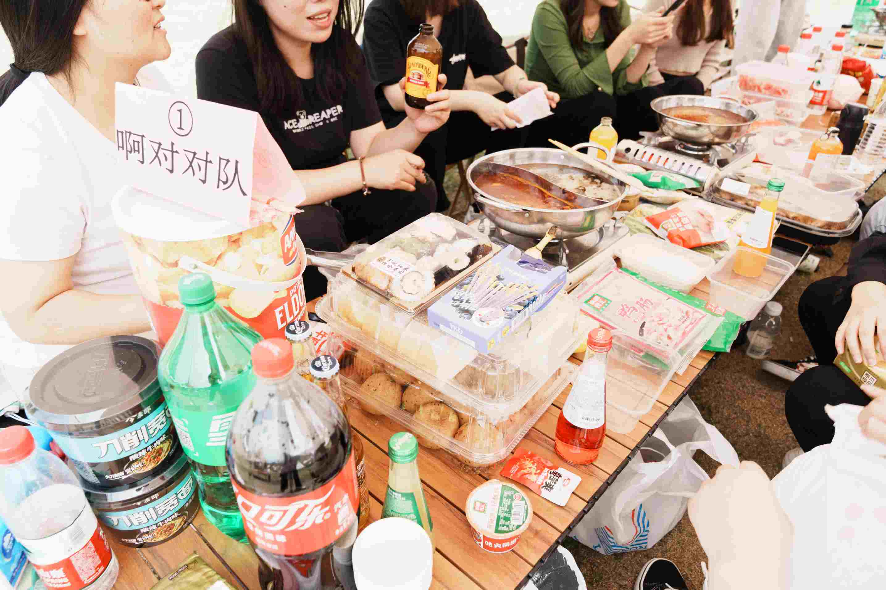 这个营地帐篷里冒着火锅的热气
