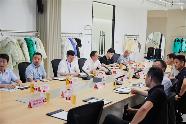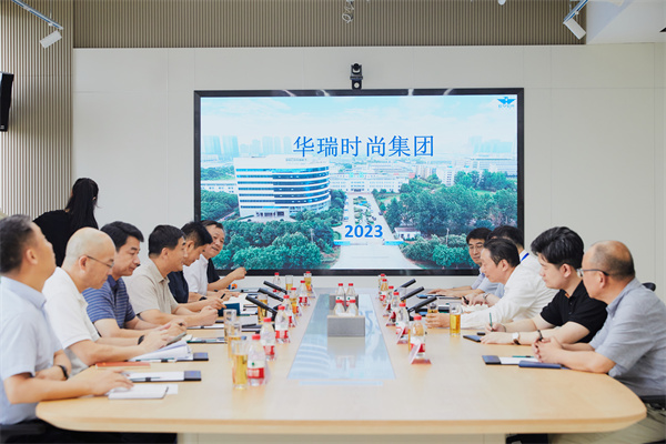 林涛书记一行在集团创始人康宜华先生、董事长孙家军先生的带领下现场参观了华瑞电商及供应链管理开发中心。康宜华先生代表集团向林涛书记一行的到来表示热烈欢迎,介绍了集团当前发展情况及下一步工作开展计划,林书记对华瑞时尚集团目前的发展给予了充分肯定。随后,双方就华瑞时尚集团打造智汇产研生态社区、建设科技时尚共享园区有关的项目建设、高校科技成果转化及有关建议开展了具体交流座谈。