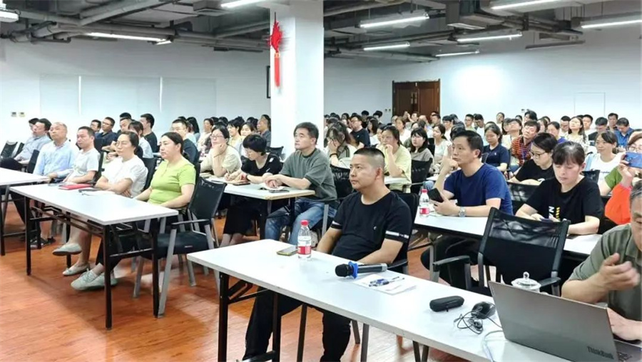 为积极响应市场变化与业务扩展需求,6月14日下午,我司特邀广东盈通新材料有限公司江苏区负责人黄耿忠,针对压胶技术和户外产品的应用开发进行培训赋能。有压胶服相关业务的业务、供应、技术和跟单人员等140余人参训,培训现场气氛热烈,互动频繁。