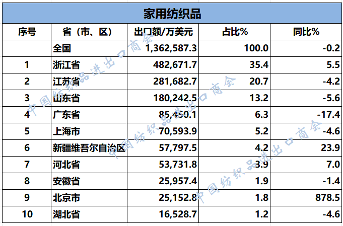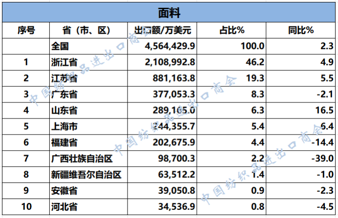 2025年1-8月,我国纺织服装累计出口1973.02亿美元,同比下降0.2%。浙江省、江苏省、广东省、山东省、福建省分别列全国纺织服装出口省市前五位,合计比重超七成。